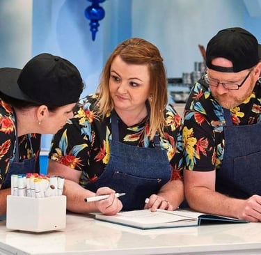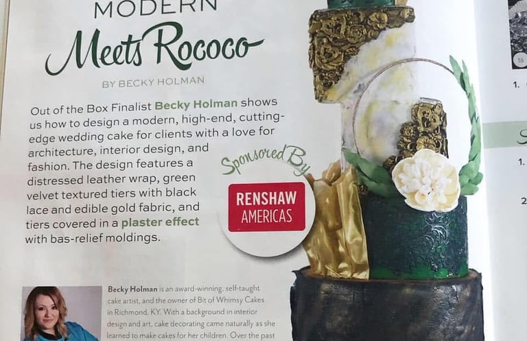 Over the years, I worked on a variety of projects - room renovations, church remodeling designs, theater sets for plays and VBS, murals, and more. When my sons were little, I discovered cake decorating, inspired by the shows on TV. What started as a hobby quickly turned into a thriving career. After only a few months of learning, I opened my own bakery, Bit of Whimsy Cakes, specializing in sculpted designs and wedding cakes. I became known for my bold flavors, vibrant colors, metallics, and textures - cakes that were as stunning as they were delicious. There’s nothing quite like hearing someone ask, “Is that a cake?!” when seeing one of my creations.